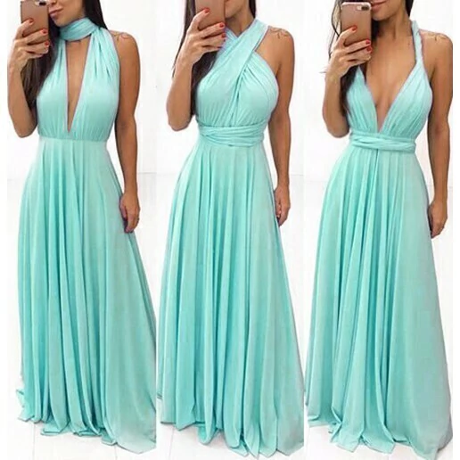 Vestido longo multiformas, esse modelo é ideal para você que ama criar diferentes formas de usar uma peça, vesatilidade e criatividade em um único vestido.
