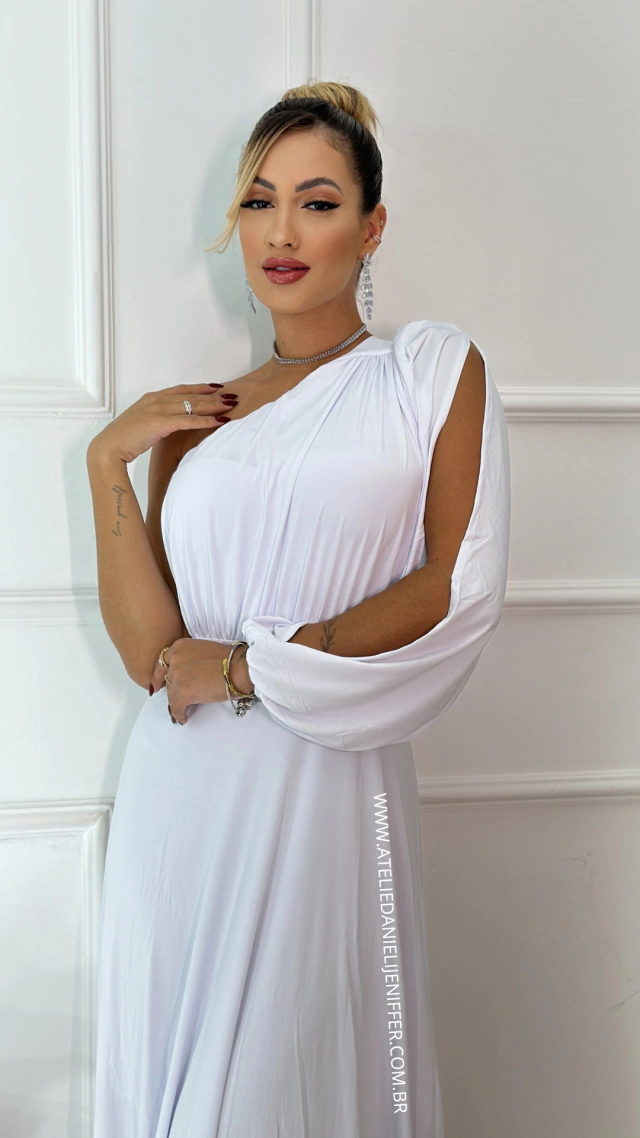 Vestido longo, esse modelo possuí manga longa com abertura lateral e punho elástico , bem fluido e delicado!