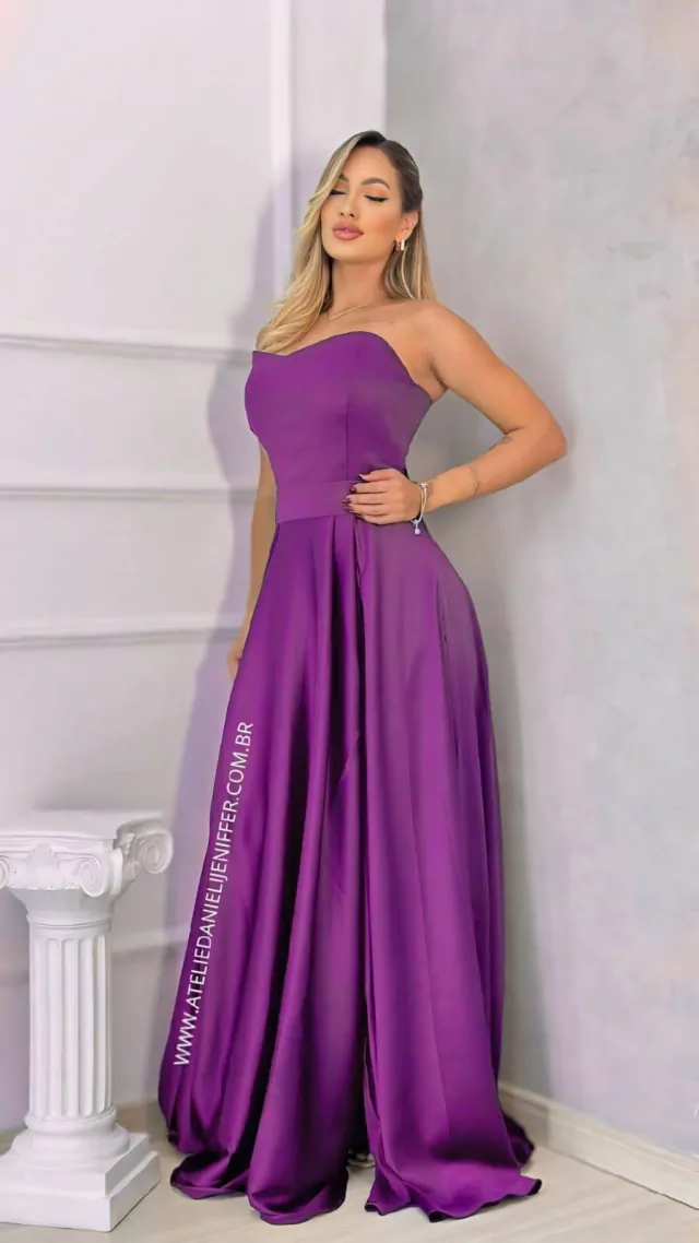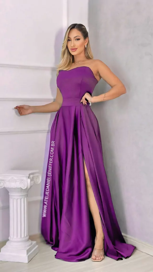 Vestido longo sereia tomara que caia possuí uma fenda enorme poderosa