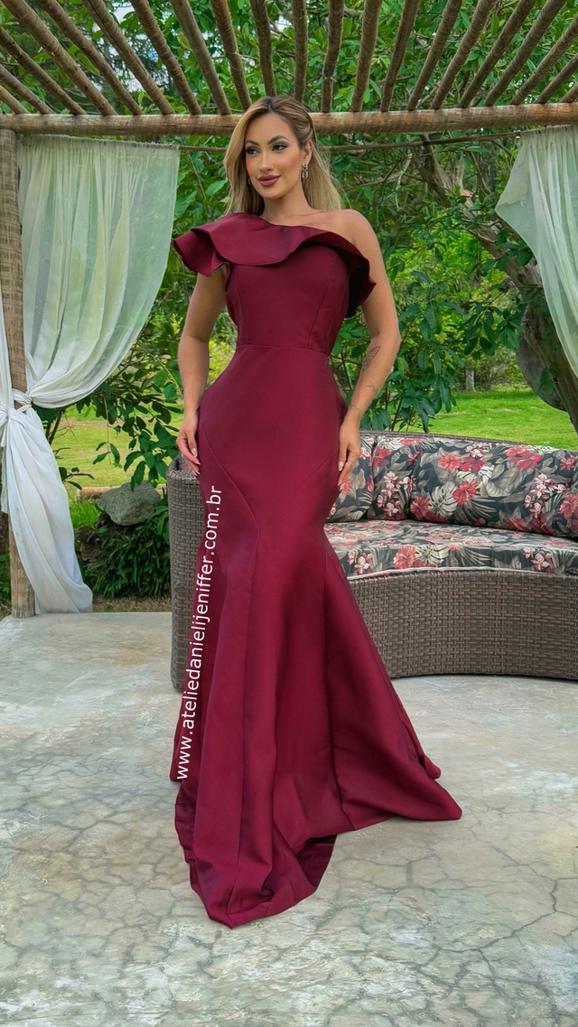 Descubra o Vestido Longo Jadi Ombro Só, uma peça que combina sofisticação e estilo. Este vestido é perfeito para quem busca um look deslumbrante para eventos especiais, com um caimento acinturado que realça a silhueta, semelhante ao formato de uma sereia.