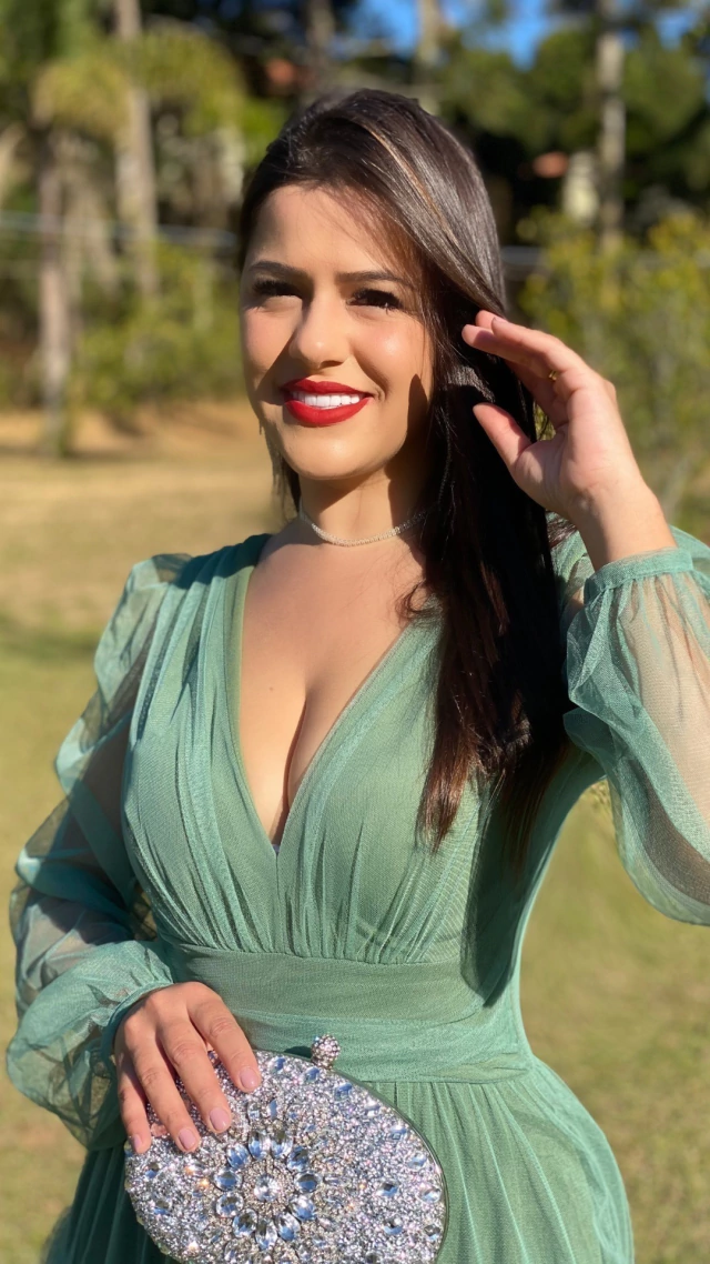 O modelo Três maria possui um decote delicado, saia fluída em tule que trazem leveza, sofisticação e exclusividade digna deste modelo e de quem o usar