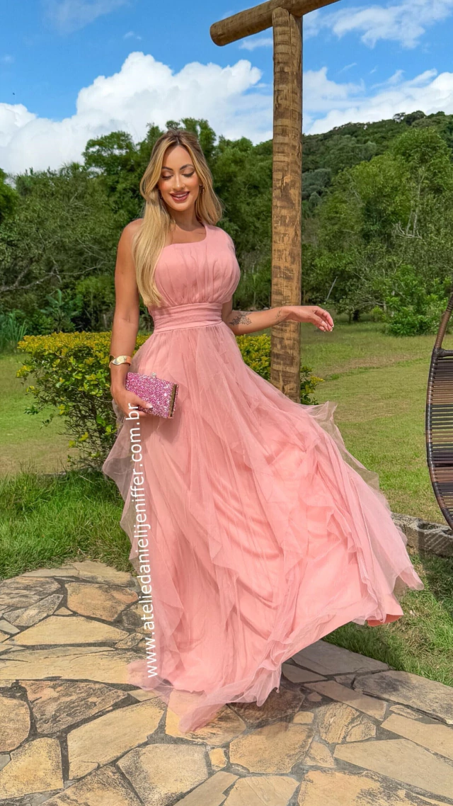 O Vestido Longo Mel é a escolha perfeita para ocasiões especiais, como casamentos, formaturas e ensaios de fotos. Com um design encantador, ele traz um babado vertical que valoriza a silhueta e proporciona um toque de sofisticação.